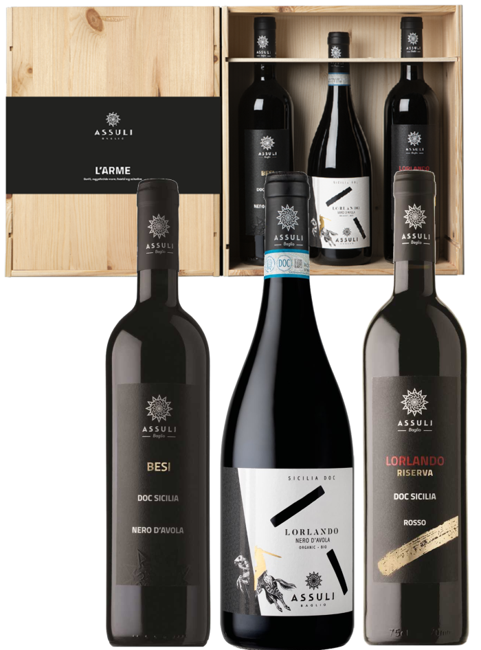 | Confezione | A bottle of Lorlando Riserva, a bottle of Besi and a bottle of Lorlando in an elegant wooden case. |