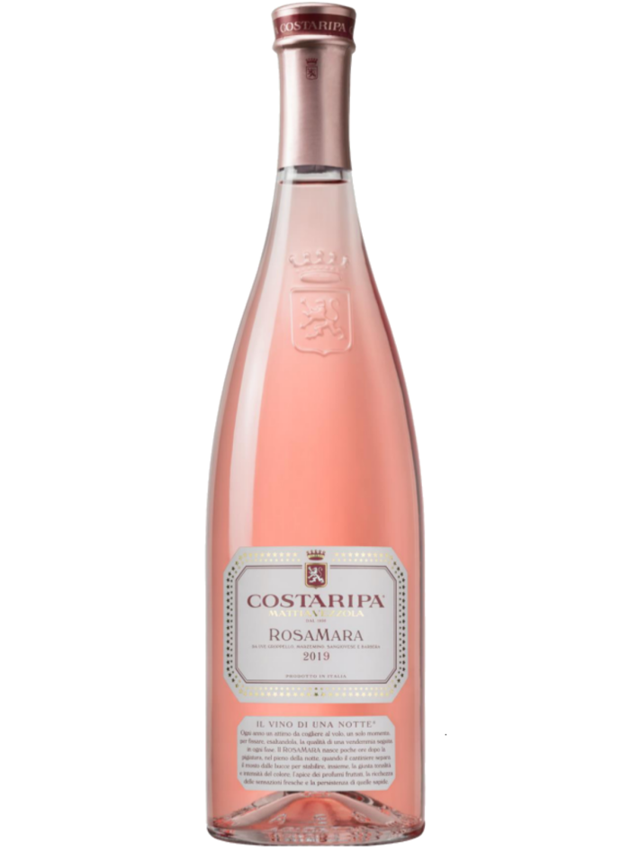 Prodotto con uve Groppello Gentile, Marzemino, Sangiovese e Barbera, tipiche del DOC "Il vino di una notte", il rosato RosaMara Costaripa propone ai suoi degustatori un sorso versatile e fine, ideale per affiancare a tavola antipasti, dessert e piatti a base di pesce.